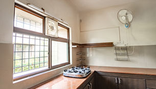 The kitchen is large, with a massive 500 lt. Fridge, four Gas burner stove and some utensils.